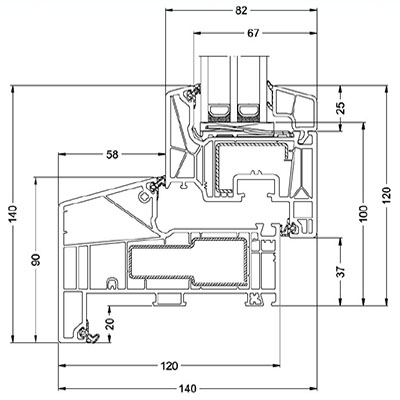 6+1-kamersysteem: Het profiel is opgebouwd uit zes isolerende kamers en een centrale luchtruimte. Deze geavanceerde structuur garandeert uitstekende thermische isolatie en geluidswering, wat bijdraagt aan een comfortabel binnenklimaat en lagere energiekosten.