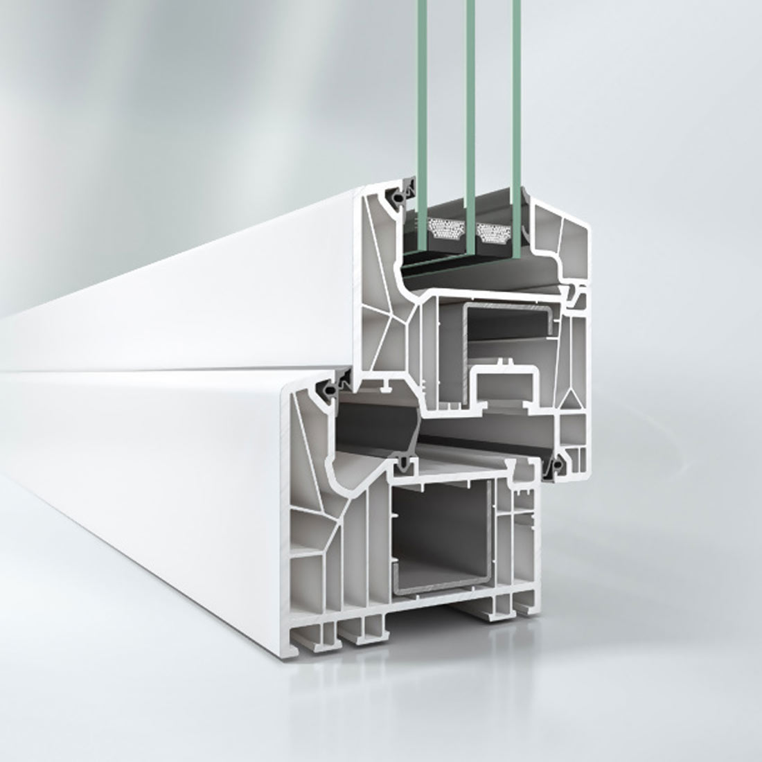 • 7-kamersysteem: Het profiel is opgebouwd uit zeven afzonderlijke isolatiekamers, wat resulteert in uitstekende thermische prestaties (Uf-waarde tot circa 0,96 W/m²K) en hoge geluidsisolatie tot 47 dB. Dit zorgt voor een comfortabel, energiezuinig en stil binnenklimaat.